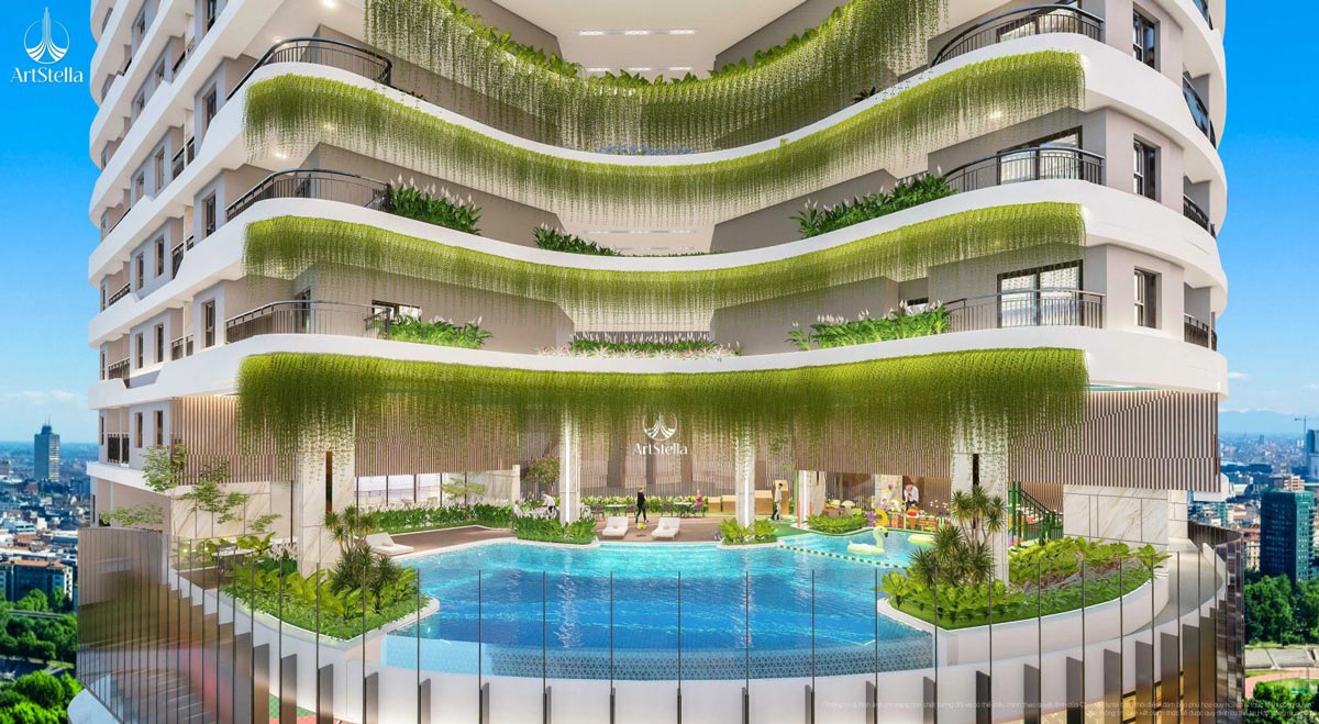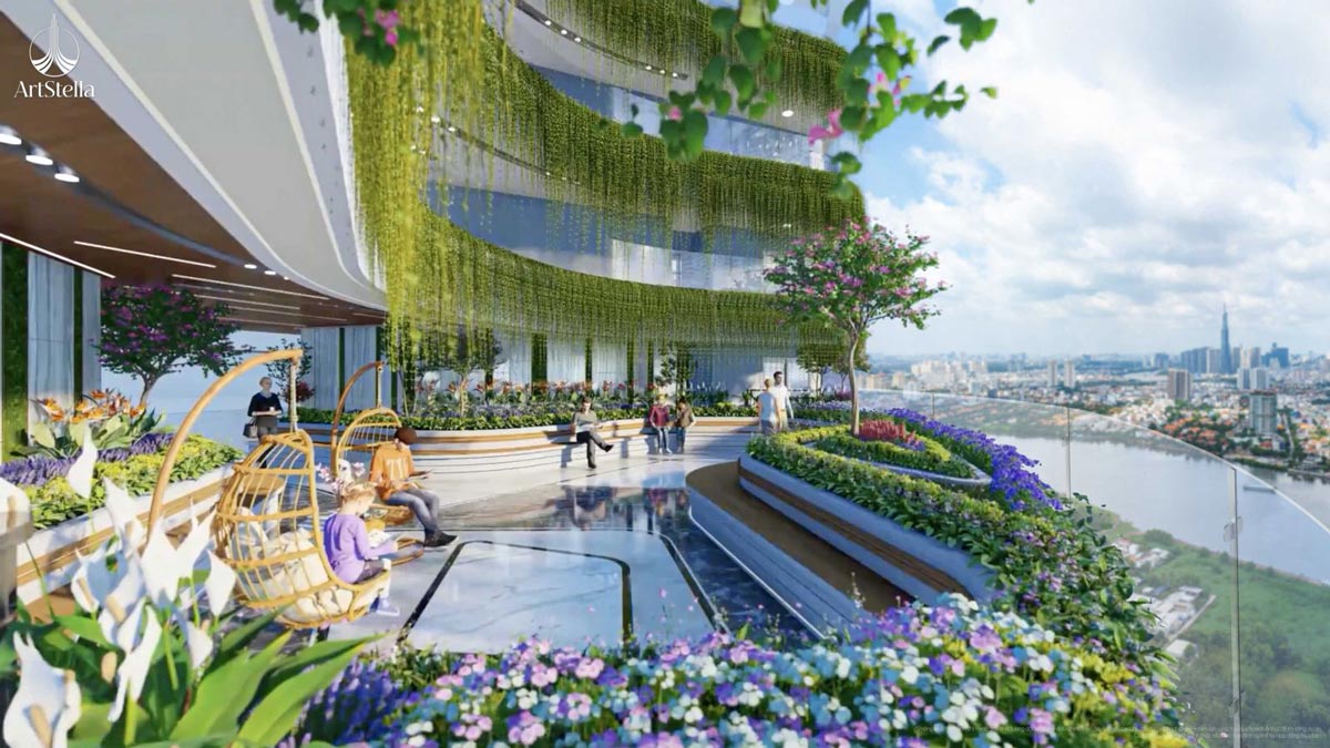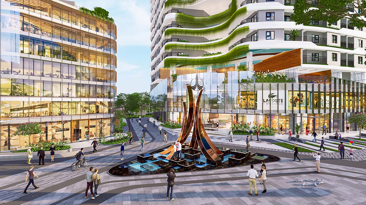 Hồ bơi tràn, vườn treo, phòng gym, yoga, spa, thư viện, lounge, đường dạo bộ, khu vui chơi trẻ em, shophouse, an ninh 24/7